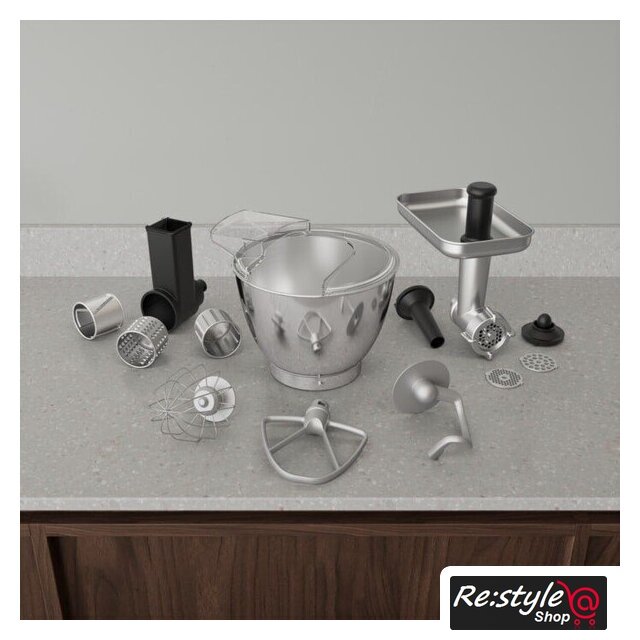 | Полная комплектация | кухонная машинаметаллическая чашавенчик крюк для тестанасадка для смешиваниязащитная крышка от брызгмясорубка с решетками с мелкой, средней и крйпной перфорацией, с насадкой дляприготовления кеббе, с насадкой для приготовления колбас |