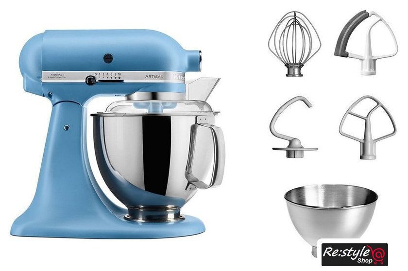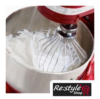 Полная комплектация | стальная чаша объемом 4,8 л;cтальная чаша объемом 3 л;проволочный венчик;крюк для теста;лопатка для смешивания;лопатка с гибким ребром;защитный обод |