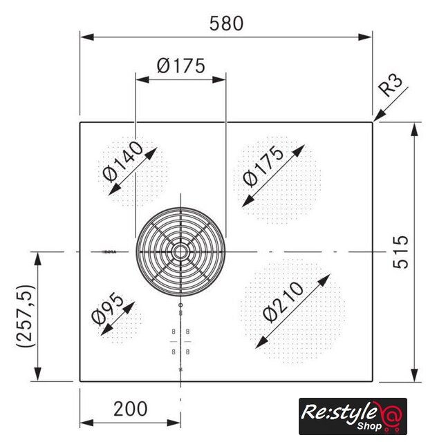 | Подробная информация о конфорках | Задняя левая конфорка - Ø 140 мм, мощность 900 Вт, с увеличением до 1350 Вт; задняя правая - Ø 175 мм, мощность 1400 Вт, с увеличением до 2100 Вт; передняя левая - Ø 95 мм, мощность 400 Вт, с увеличением до 600 Вт; передняя правая - Ø 210 мм, мощность 2300 Вт, с увеличением до 3000 Вт. |