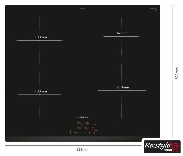 | Подробная информация о конфорках | 1 х 1,4 (2,2) кВт, 1 х 2,2 (3,7) кВт, 2 х 1,8 (3,1) кВт |
