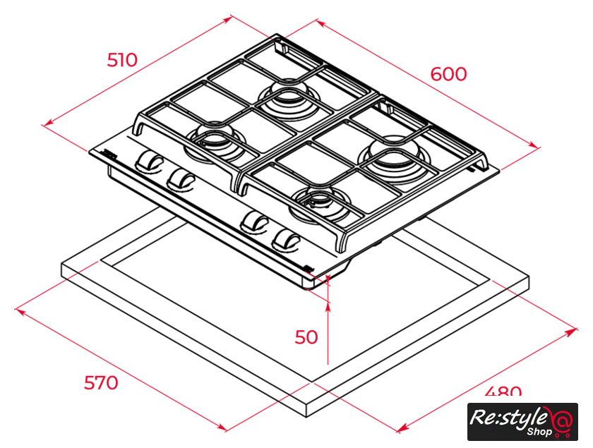 Подробная информация о конфорках | 2.8 кВт1.75 кВт1.4 кВт1 кВт |