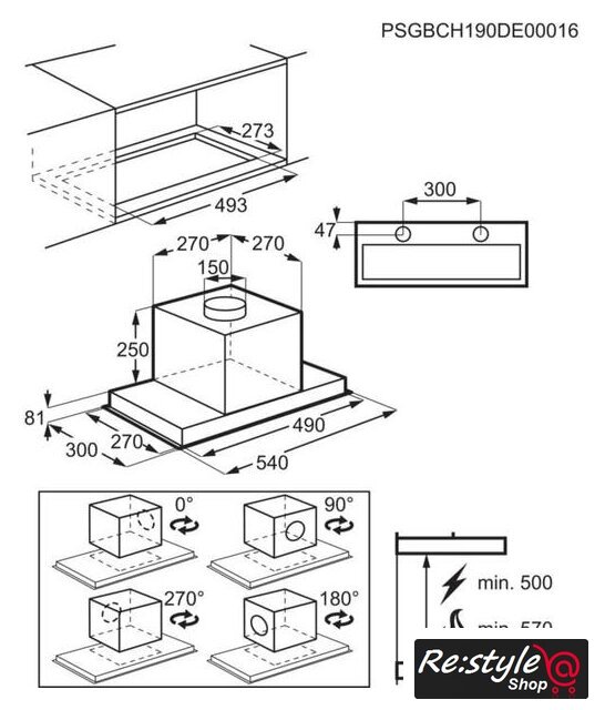 | Минимальная производительность отвода | 300 куб. м/ч |
