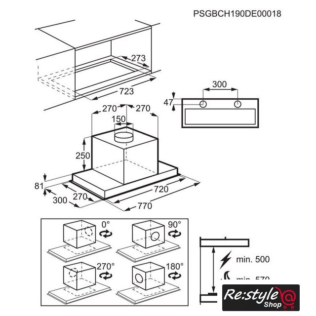 | Минимальная производительность отвода | 300 куб. м/ч |