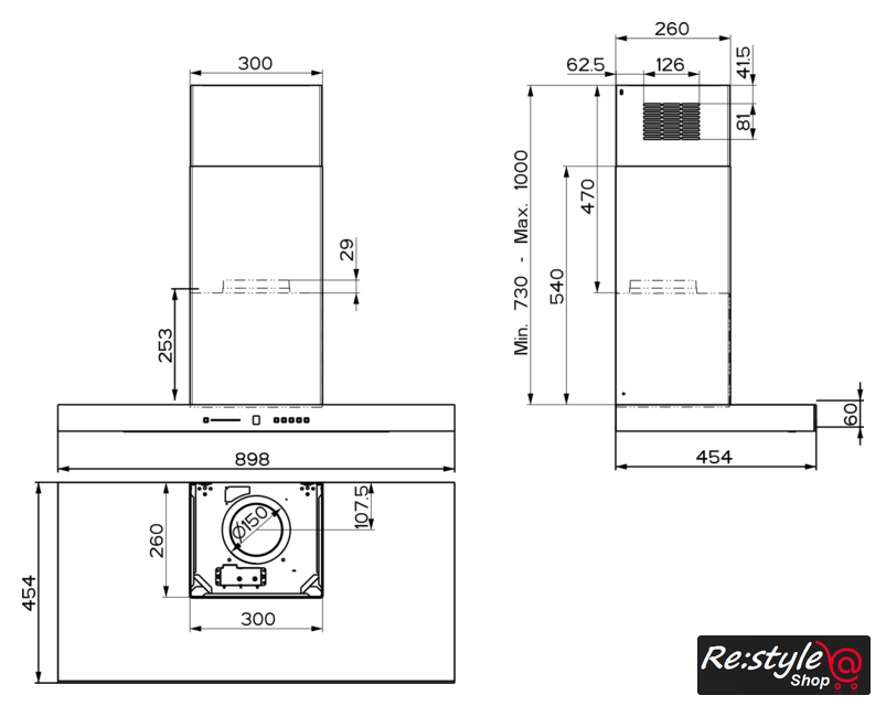 | Минимальная производительность отвода | 300 куб. м/ч |