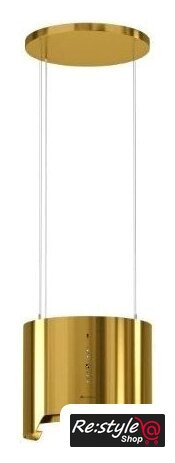 конструкция коробчатая, монтаж островной, ширина 39 см, управление электронное/кнопочное, производительность вытяжки 365 м³/ч, цвет золотой
