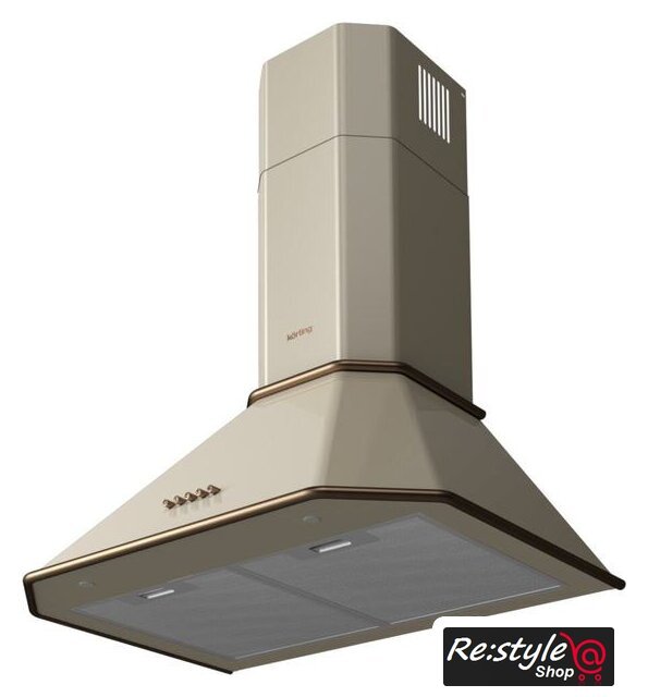 конструкция купольная, монтаж настенный, ширина 59.8 см, управление механическое/кнопочное, производительность мотора 800 м³/ч, цвет слоновая кость