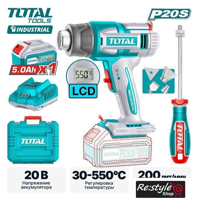 | Комплект поставки | - Термовоздуходувка - 1 шт.- Аккумулятор 5,0 Ач TFBLI20011 - 1 шт.- Зарядное устройство 2,0 А TFCLI2001 - 1 шт.- Редукционная насадка - 1 шт.- Отражающая насадка - 1 шт.- Плоская насадка - 1 шт.- Скребок - 1 шт.- Кейс. |