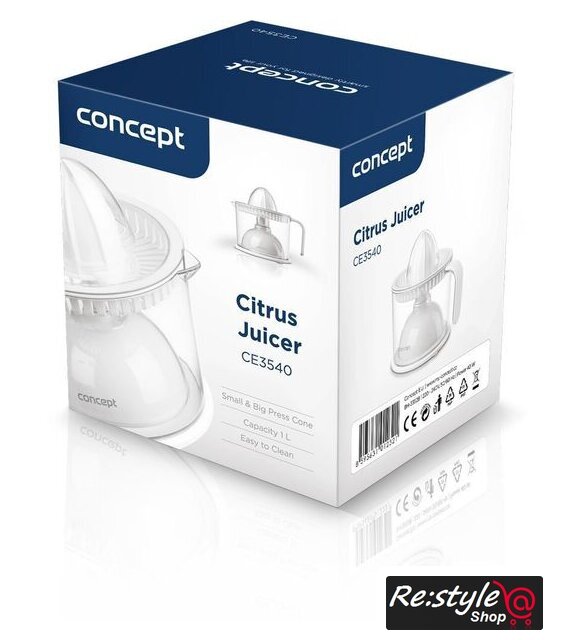 Комплектация | Два размера прессующих конусов: маленький прессованный конус (например, лайм), большой прессованный конус (например, апельсины, грейпфруты, лимоны) |