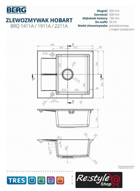 | Способ установки | врезная под столешницу |