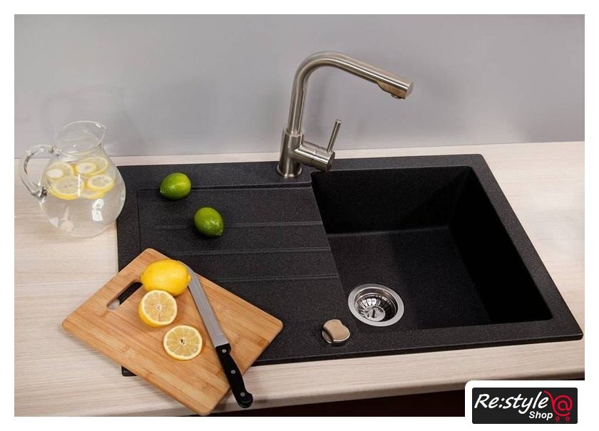 врезная под столешницу, гранит, фактура: матовая, размеры: 50x78 см, глубина чаши: 18 см, в шкаф шириной от 45 см, клапан-автомат