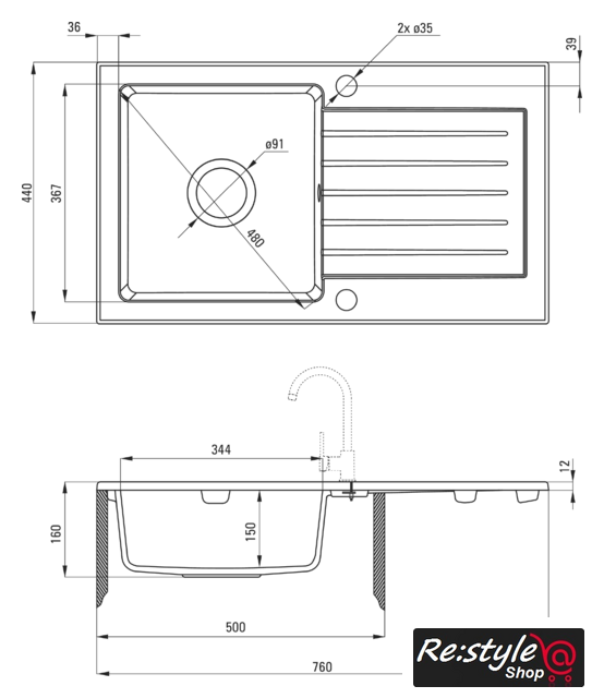 | Способ установки | врезная на столешницу |