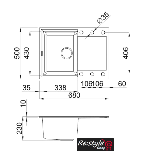 врезная на столешницу, искусственный камень, размеры: 68x50 см, в шкаф 45 см