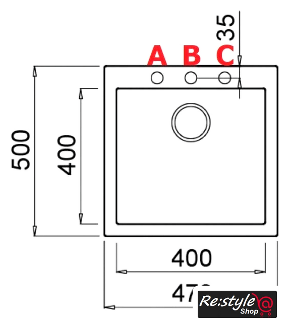 врезная на столешницу, искусственный камень, размеры: 47x50 см, в шкаф 45 см