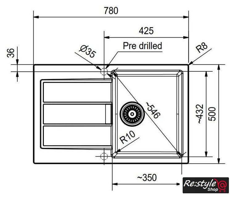 | Диаметр сливного отверстия | 3.5" |
