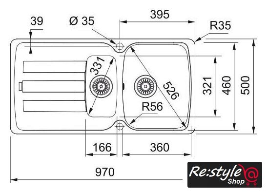 врезная на столешницу, искусственный камень, размеры: 50x97 см