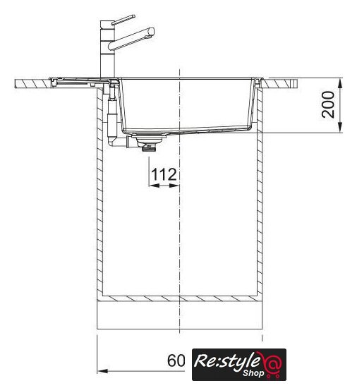 врезная на столешницу, искусственный камень, размеры: 78x43.5 см, в шкаф 60 см