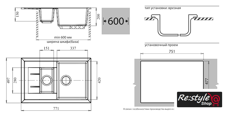 | Способ установки | врезная на столешницу |