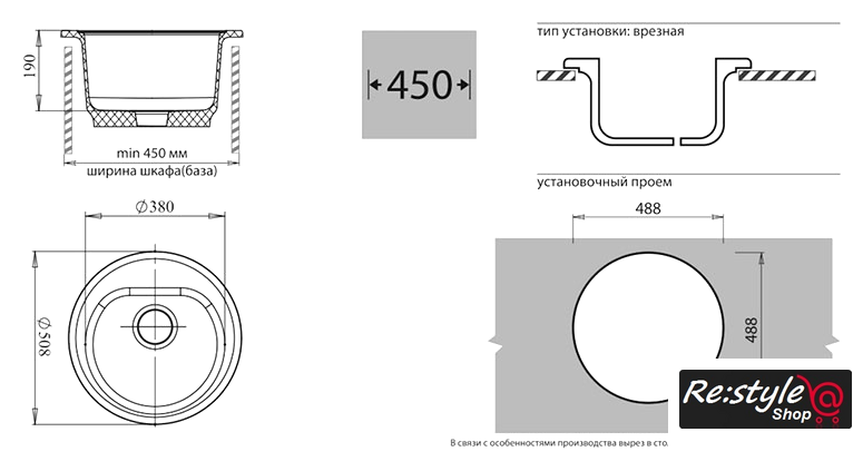 | Способ установки | врезная на столешницу |