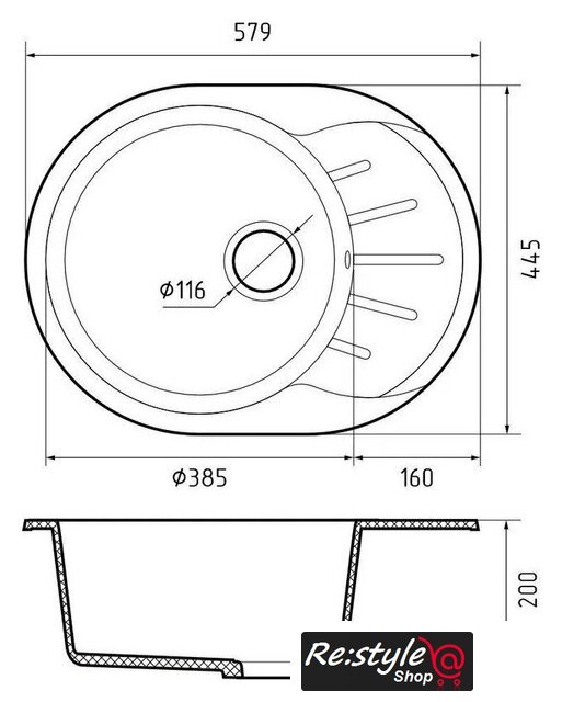 врезная на столешницу, искусственный камень, размеры: 58x45 см, в шкаф 45 см