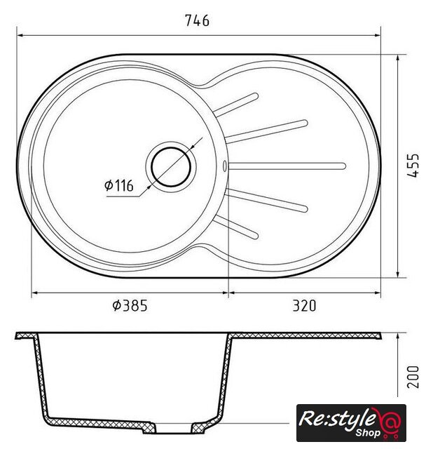 врезная на столешницу, искусственный камень, размеры: 74.6x45.5 см, в шкаф 50 см
