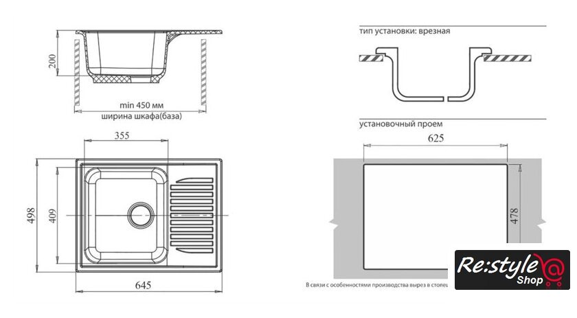 | Способ установки | врезная на столешницу |