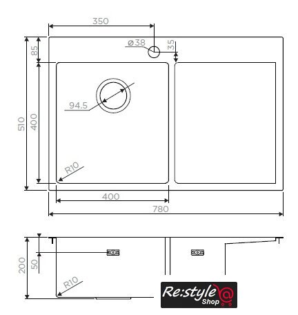 врезная на столешницу/врезная вровень со столешницей, нержавеющая сталь, размеры: 78x51 см, в шкаф 45 см