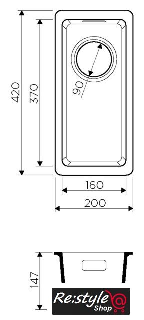 врезная под столешницу, искусственный камень, размеры: 20x42 см, в шкаф 30 см