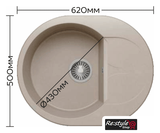 врезная на столешницу, искусственный камень, размеры: 62x50 см, в шкаф 50 см