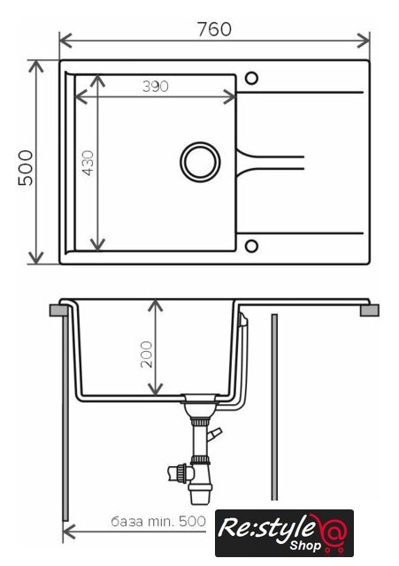 врезная на столешницу, искусственный камень, размеры: 76x50 см, в шкаф 50 см