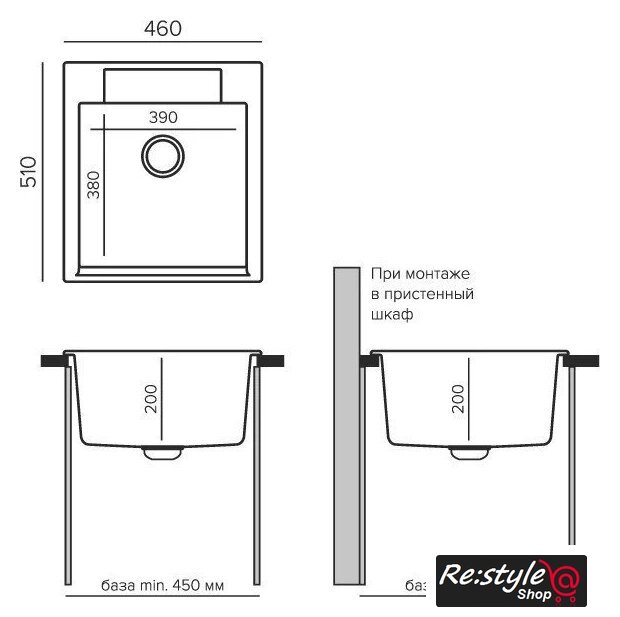 врезная на столешницу, искусственный камень, размеры: 51x46 см, в шкаф 45 см