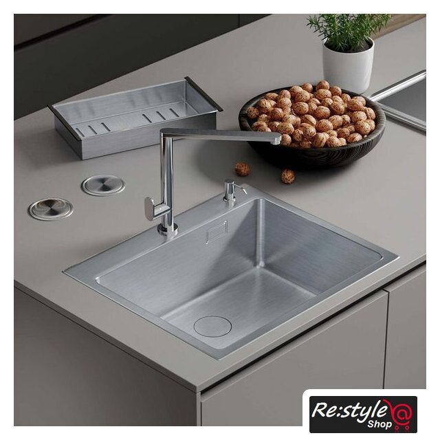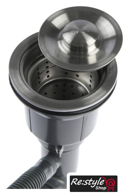 Комплектация | сифон с гофрой, коландер из нержавеющей стали, дозатор для моющих средств, корзинчатый вентиль, декоративная накладка, 2 заглушки на отверстия, комплект креплений к столешнице |
