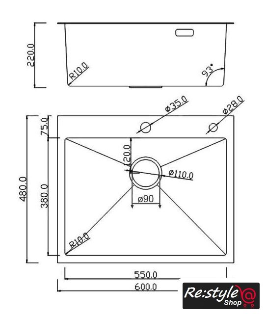 врезная на столешницу, нержавеющая сталь, размеры: 60x48 см