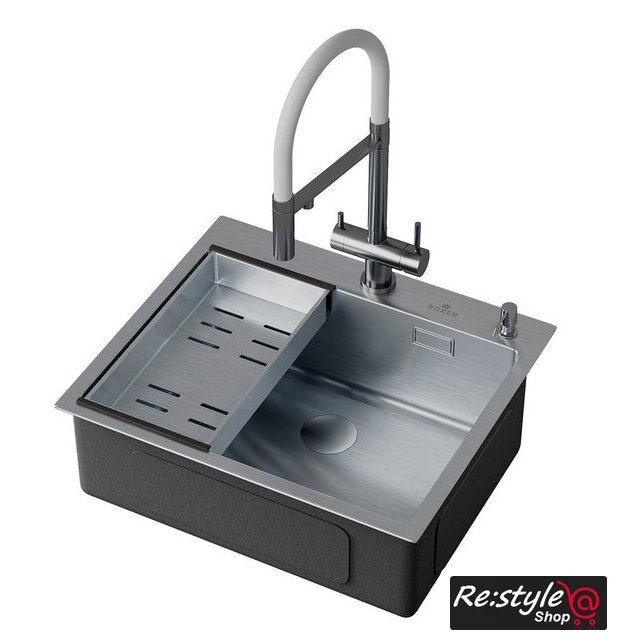 Комплектация | сифон с гофрой, коландер из нержавеющей стали, дозатор для моющих средств, корзинчатый вентиль, 2 заглушки на отверстия, комплект креплений к столешнице |