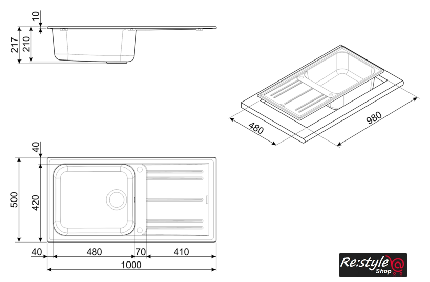 врезная на столешницу, искусственный камень, размеры: 100x50 см, в шкаф 60 см