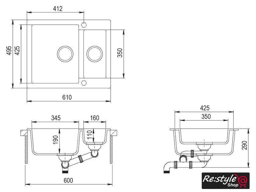 | Глубина мойки | 49.5 см |