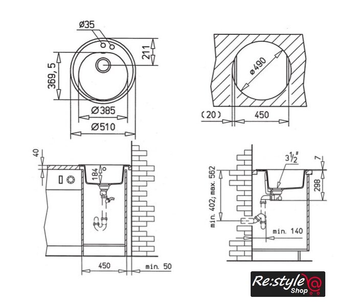 | Диаметр сливного отверстия | 3.5" |
