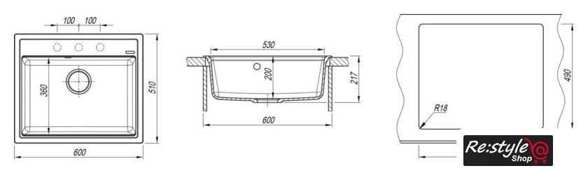 врезная на столешницу, искусственный камень, размеры: 60x51 см, в шкаф 60 см