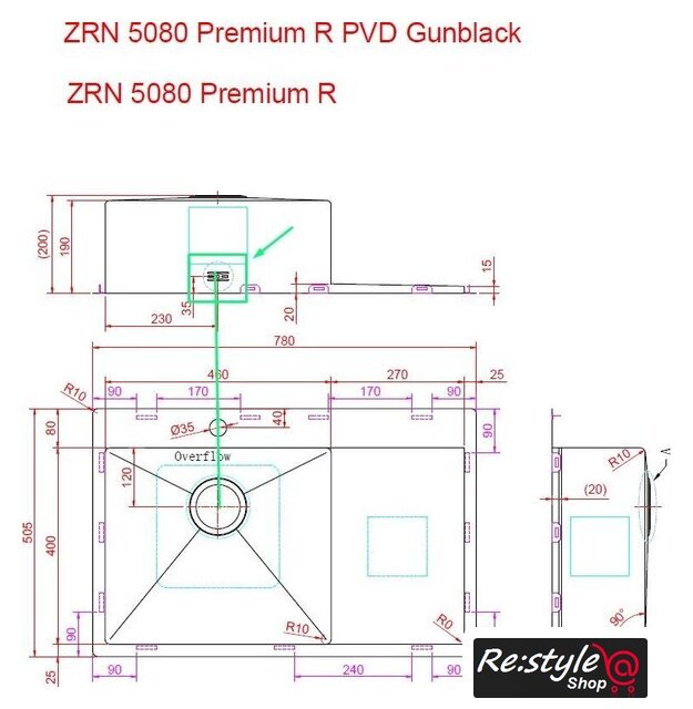 | Длина мойки | 50.5 см |