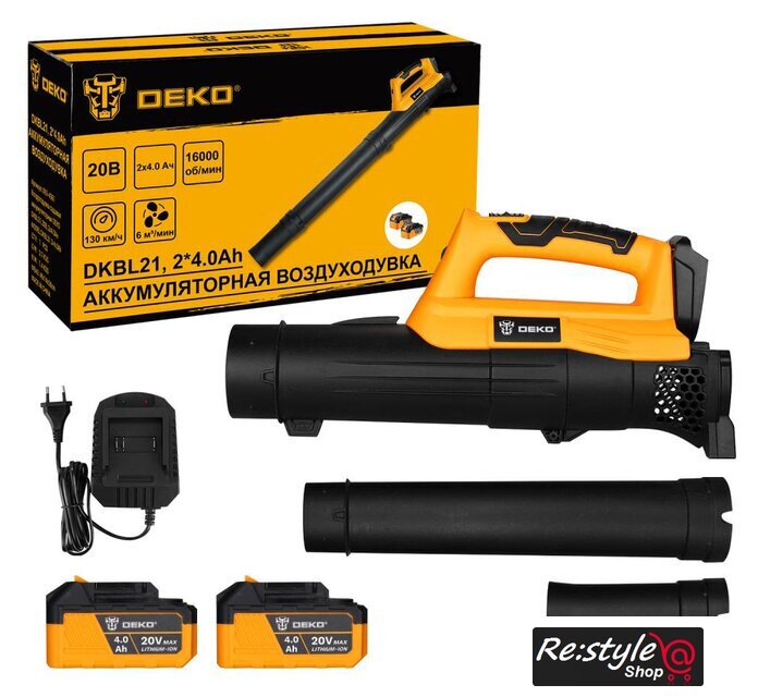 Комплектация | - Воздуходувка - 1 шт.- Труба удлинительная пластиковая - 2 шт.- Зарядное устройство - 1 шт.- Аккумуляторная батарея 4,0 - 2 шт.- Инструкция |