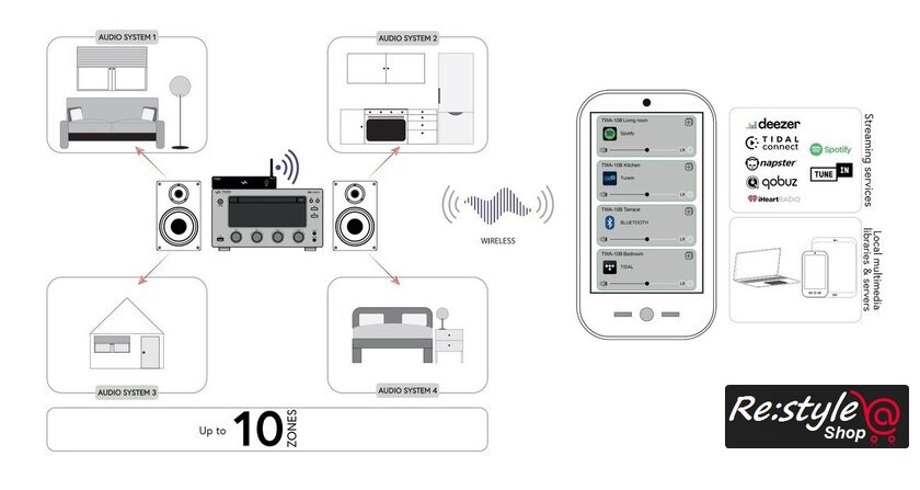 | Стриминговые сервисы | Deezer, iHeartRadio, Napster, Qobuz, Spotify, Tidal, TuneIn |