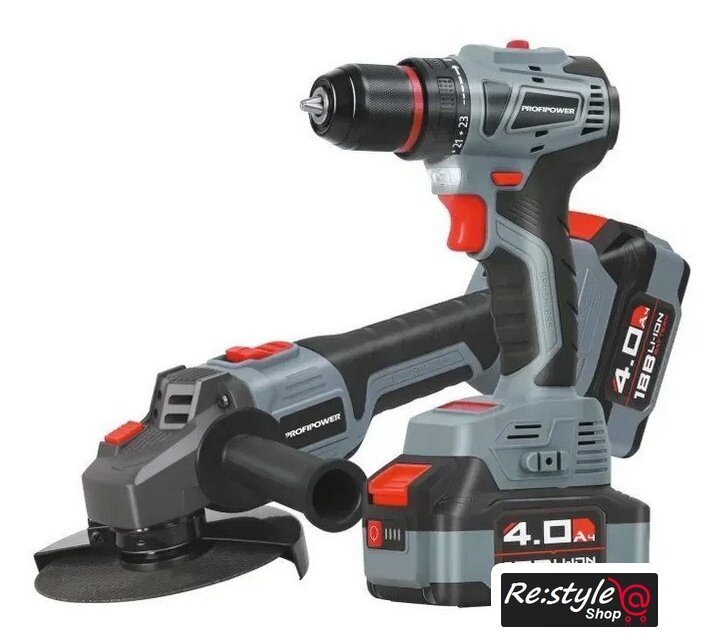 | Состав набора | дрель-шуруповерт, угловая шлифовальная машина |