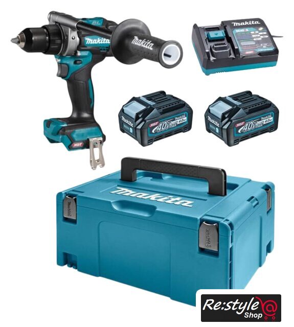 | Комплектация | - дрель-шуроповерт- 2 аккумулятора BL4040 4,0 Ач;- Зарядное устройство DC40RA;- (+/-) бита №2;- Боковая рукоятка;;- Крючок крепления на ремень;- Кейс Makpac 3. |