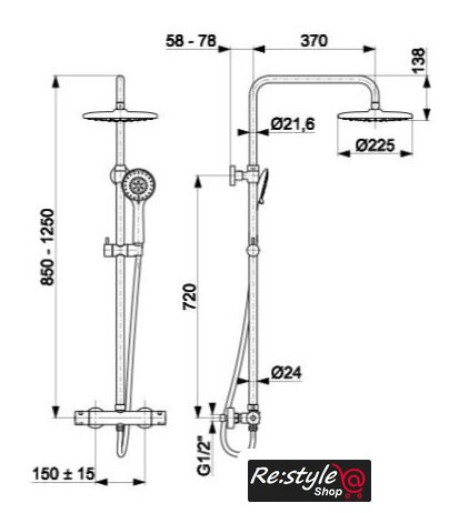 | Диаметр (ширина) верхнего душа | 225 мм |