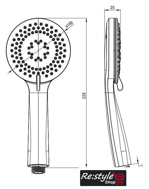 | Диаметр (ширина) ручного душа | 100 мм |
