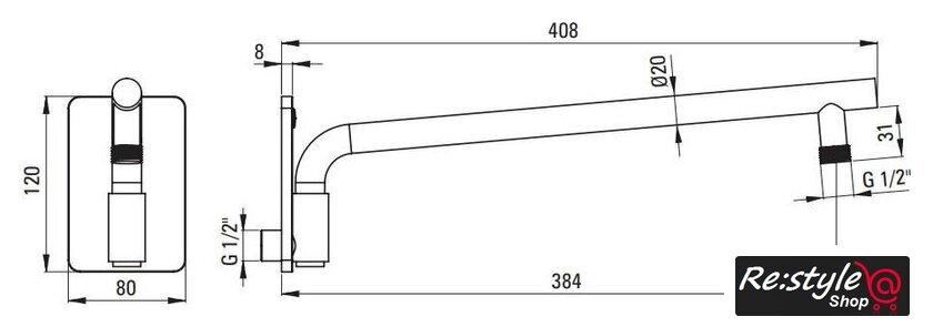 | Вылет верхнего душа | 400 мм |