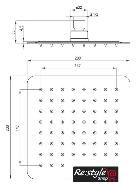 | Диаметр (ширина) верхнего душа | 200 мм |