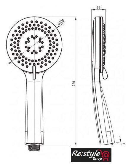 | Диаметр (ширина) ручного душа | 100 мм |