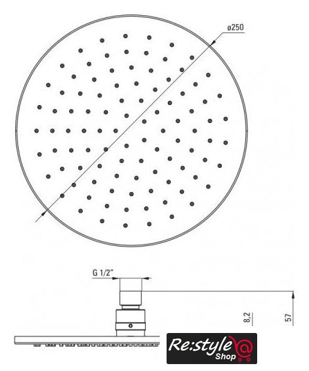 | Диаметр (ширина) верхнего душа | 250 мм |
