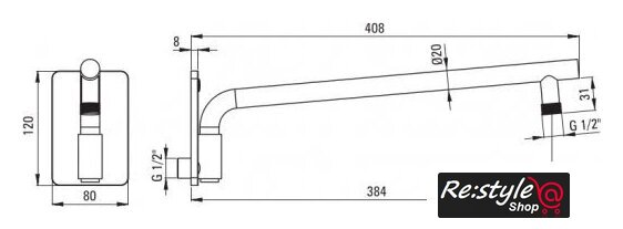 | Вылет верхнего душа | 400 мм |