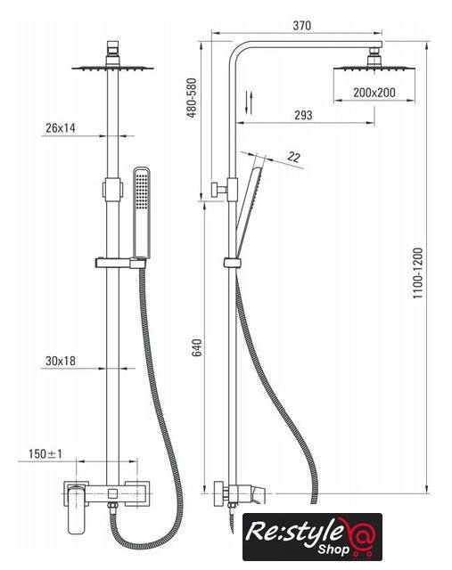 | Диаметр (ширина) верхнего душа | 200 мм |